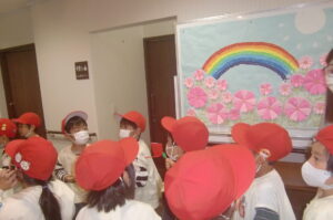 10月16日(木)年長組でリアンレーヴのおじいさんおばあさんに会いに行ってきました。前回は7月でした。 園外を歩くのも上手になってきて道路や横断歩道も間を空けずに歩いて行けました。 プレゼントは、折り紙で作った「チュ… 続きを読む
