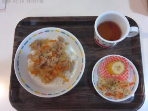 豚丼、もやしの信田和え(しのだあえ)、バナナ