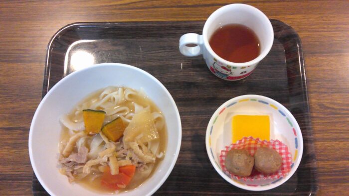 ♪ 山梨県の郷土料理「ほうとう」 肉団子、(ケチャップ)オレンジゼリー