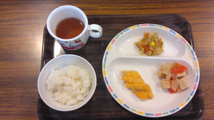 ご飯、赤魚の黄金焼き、高野豆腐と野菜の煮物、彩りサラダ