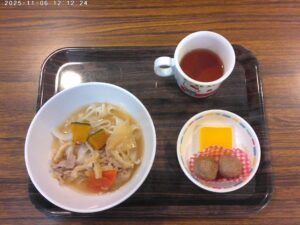 ♪ 山梨県の郷土料理「ほうとう」 肉団子、(ケチャップ)オレンジゼリー