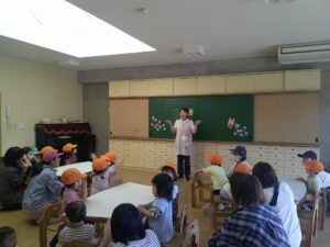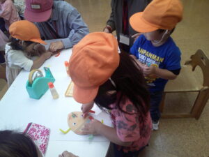うさぎが出来上がったら、ひもを付けてみんなで幼稚園の中をお散歩しました。