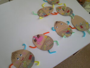 みんなの作ったドングリを並べて貼ったら、遠足しているみたいなりました。