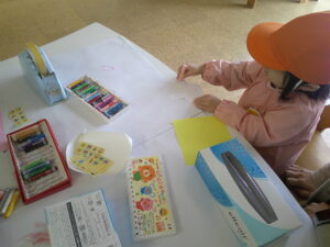 貼りました。この色が使いたい、ここにシールを貼りたい、と自分で決めていくことも増えてきました。