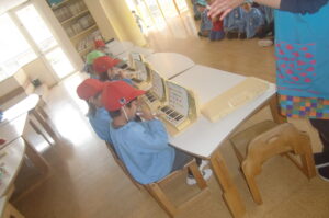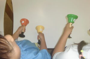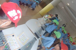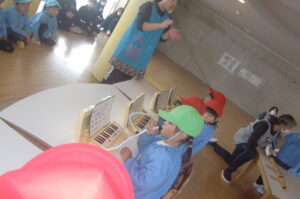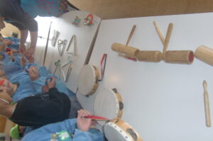 みんなで合わせることは難しかったようですが、音楽に親しみ音を出す楽しさや友だちとの一体感など味わうことができました。