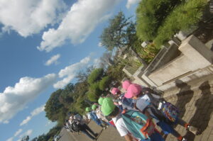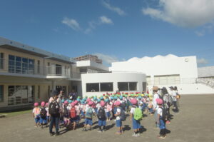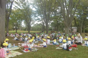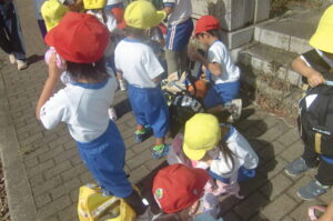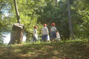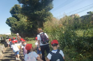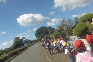 現地まで水飲み休憩時間も含めて約50分歩きました。つぼみ組は行き帰りとも園バスです。