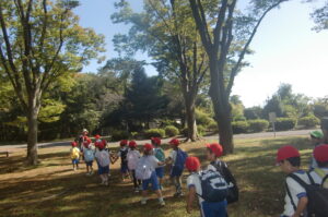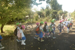 歩くスピードを合わせたり、小さい組のお友だちを気づかいながら歩きました。さすが年長組!