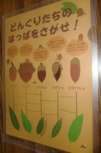 今年はくぬぎがたくさん落ちていました。まてばしい、スダジイ、シラカシも子どもたちのどんぐり袋に入っていました。