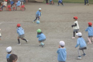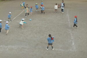 ドッチボールが大好きな年長組。自由遊びの時間もいつも遊んでいるので、みんな上手になってます。