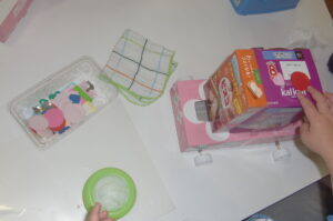 <23日(木)つぼみ、年少中組> つぼみ組はお父さんお母さんと協力して、空き箱を使って、車を作りました。