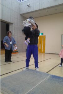 最後によく頑張ったごほうびで、一人ずつ高い高いをしてもらいました。とてもうれしそうでした。