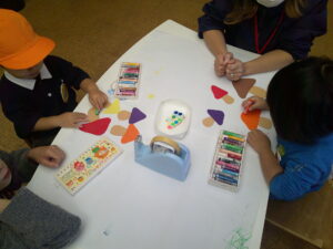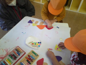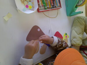 11月14日 シールを貼ったり、クレヨンで絵を描いたりして、小さなきのこをたくさん作りました。