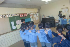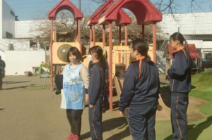 12月17日に牧の原中学校の生徒28名が福祉の授業で幼稚園に実習に来ました。