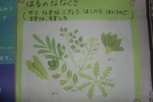 園長先生からは3学期の行事の話、春の七草の話などがありました。3学期からのみどりコースバスの運転手さん森崎さんの紹介もありました。