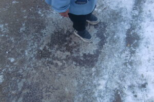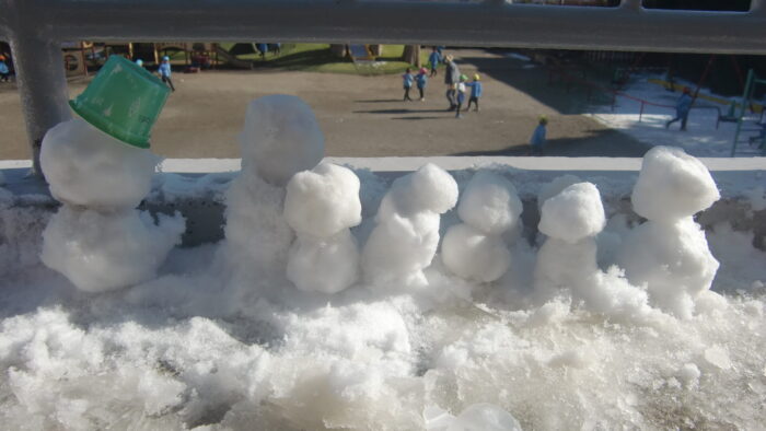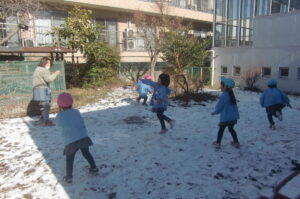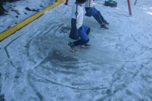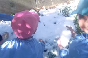 2026年2月9日 にちじょう 雪と・・・ 土日に降った雪で遊びました。 ブランコや鉄棒付近や2階のテラス、裏庭は雪が残っていたり日陰は凍っていました。 雪だるまを作ったりや雪合戦もしました。氷の上はツルツル滑ってアイススケートみたい! 雪や氷の冷たさや感覚を味わうことができました。また降るといいね! 年長組は紙版画をしました。厚紙で台紙を作り何日か乾かしてからローラーでインクを付け、紙を重ねてバレンでこすり、はがすと形が写っていてなんだか不思議!