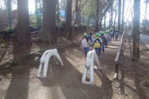 フライングゲージを通り子どもたちがよく知っているフラミンゴにも会う事ができました。毎回、四季の自然を感じさせてくれる ”うさぎの道” を大通りまで歩いて園バスで帰りました。楽しかったね‼