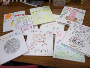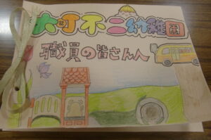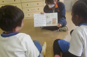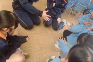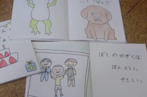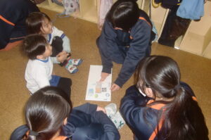 家庭科の授業内で制作した絵本をグループに分かれて読んでもらいました。