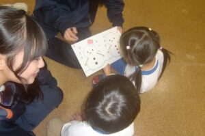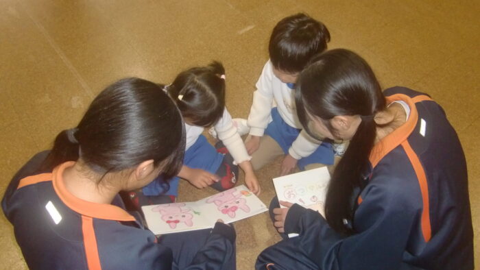 中学生のコミュニケーション能力の向上や地域問題への意識を高めることを目的とした体験に幼稚園が役に立てる事ができて良かったと思います。成長した卒園児と会える機会にもなりました。