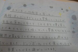 終了後に生徒さん全員からお手紙をいただきました。