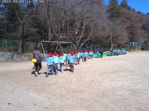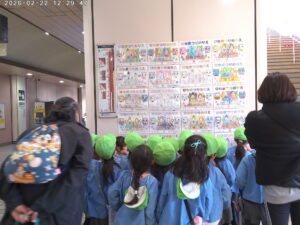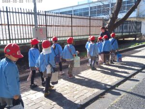 帰りは幼稚園よりも広い校庭を一周して、松飛台駅のお雛様のぬりえを見てから幼稚園に戻ってきました。