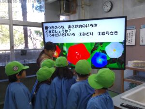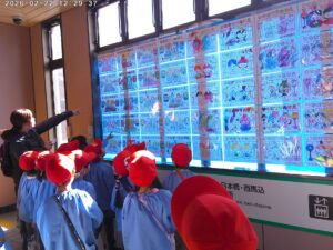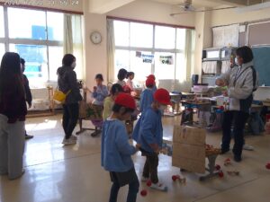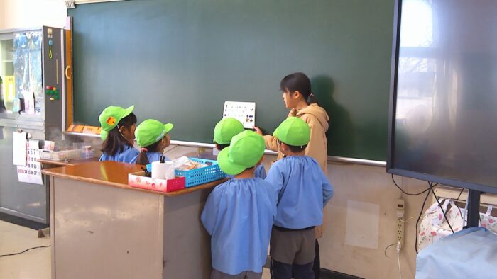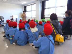 大町小学校までは近いので歩いて行きました。5年生のお兄さんお姉さんが学校の中や色々な教室を案内してくれました。