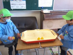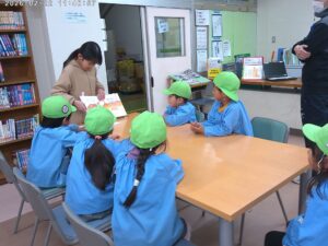 図書室には本がいっぱい!一年生が昔遊びをおしえてくれたり、各教室でクイズをしたり、楽しく見学させてもらいました