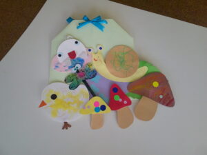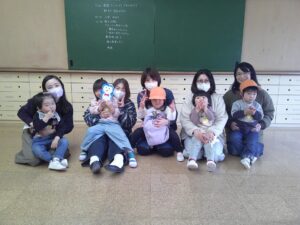 ひよこぐみはこの日で最後だったので、おわりの会をしました。園長先生の話を聞いたり、手遊びなどをした後、今まで作った作品を配りました。自分で作った作品を見ると、思わず「これ、かわいいね」とにこにこ見ながら並べている子もいました。 この1年で一人ひとりが、その子のペースでとても成長しました。1年間どうもありがとうございました。4月の入園式で会えるのを楽しみにしています。